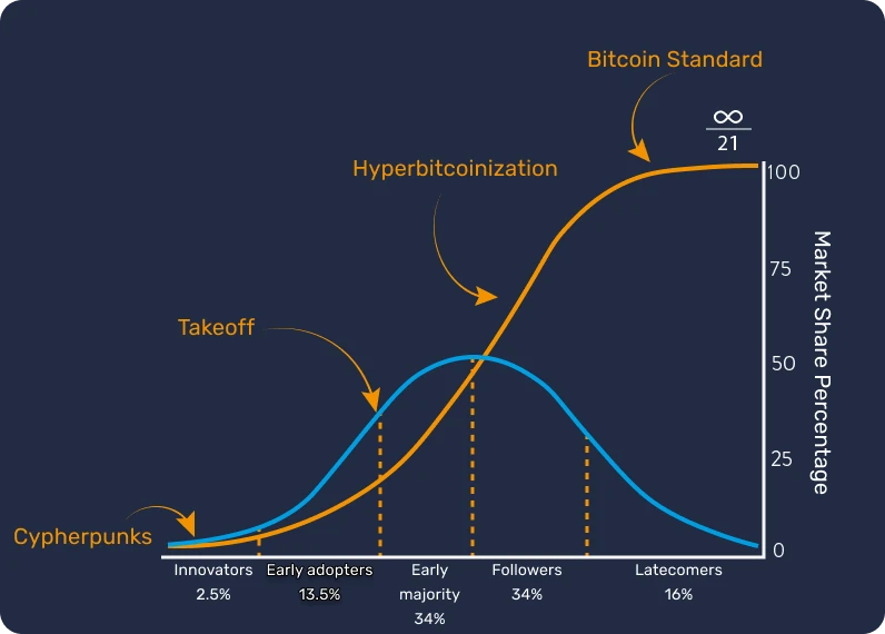 Stejně jako každá nová technologie, i přijetí bitcoinu se vyvíjí po S-křivce, která znázorňuje postup od prvních uživatelů k širšímu přijetí. Éru prvních osvojitelů jsme již překonali a ukazatele naznačují potenciální demokratizaci bitcoinu. Koneckonců jde o virální technologii, kterou nelze snadno zastavit. Na jedné straně Salvador učinil odvážný krok a plně přijal Bitcoin jako zákonné platidlo. Na druhé straně jiné země reagovaly jeho zákazem a kriminalizací jeho používání, což ukazuje, že přijetí Bitcoinu je složité a je vystaveno vlivu kulturních, historických a národních faktorů.