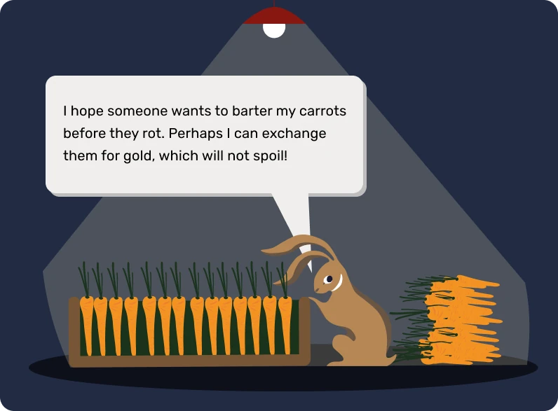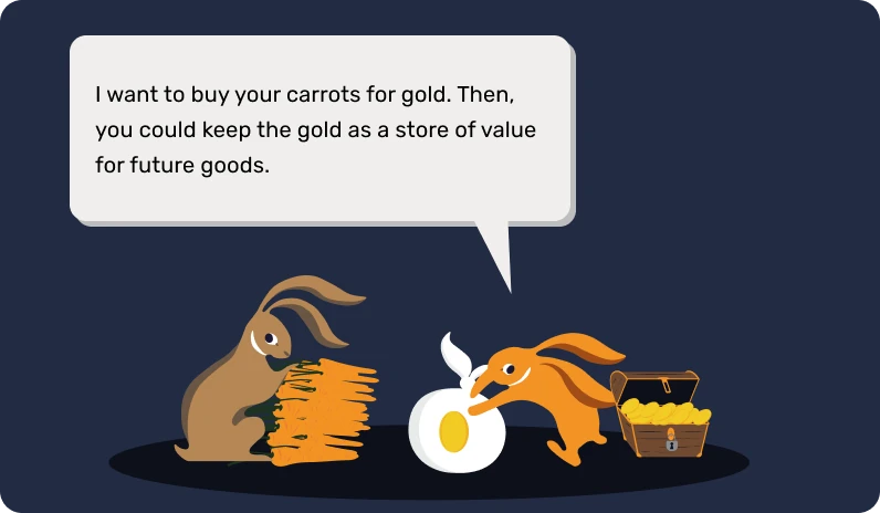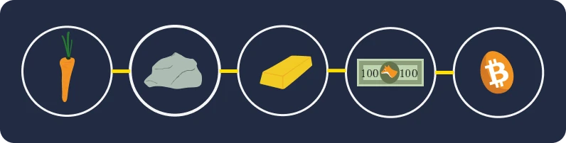 S rozvojem civilizací a rozšiřováním obchodu do nových oblastí tak vznikla potřeba univerzálního prostředku směny. Jednotlivci nejprve experimentovali s předměty, jako jsou mušle a drahé kameny, ale ty nebyly tak trvanlivé a vzácné, jak se domnívali. Nakonec se standardem stalo zlato, a to díky své vzácnosti, trvanlivosti a dělitelnosti. Bylo a dodnes je symbolem bohatství a moci.