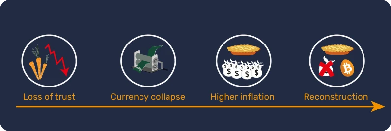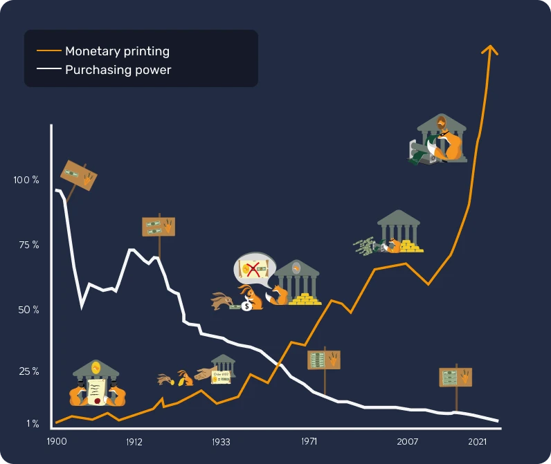 Naopak státní fiduciární měny (fiat) jsou snadno použitelné, ale jsou neustále znehodnocovány subjekty, které je ovládají (králi, centrálními bankami, císaři, diktátory).