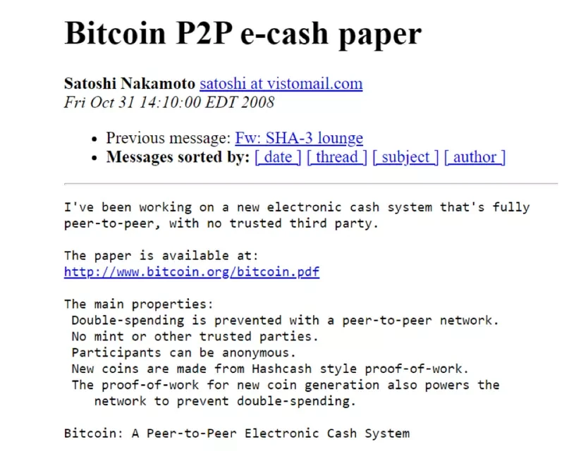 Právě v tomto plodném prostředí zveřejnil tajemný Satoshi Nakamoto v roce 2008 whitepaper Bitcoinu. V tomto dokumentu zkombinoval několik myšlenek z hnutí cypherpunk, jako jsou důkaz práce a kryptografické časové značky, a vytvořil decentralizovanou digitální měnu odolnou vůči cenzuře.