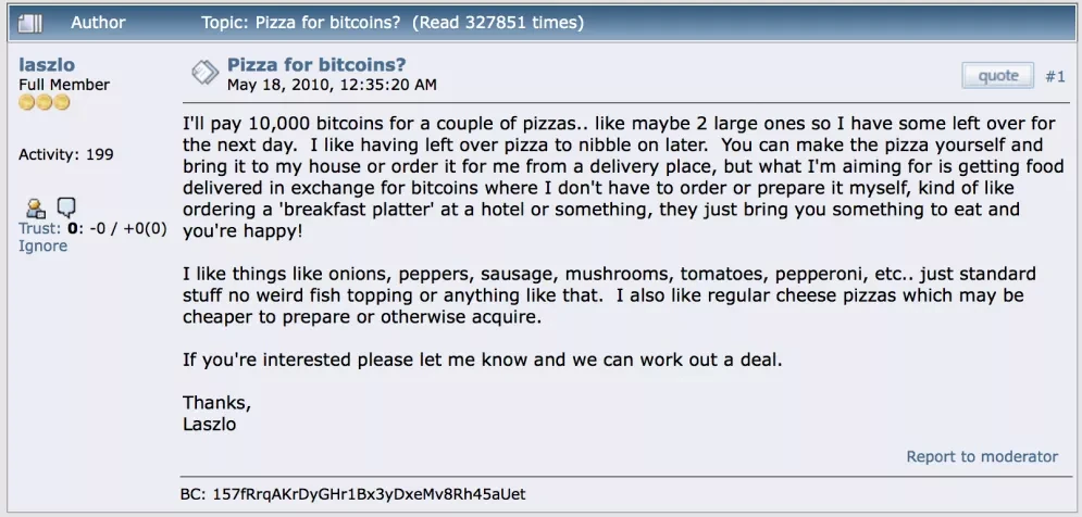 "Myslím, že internet bude jednou z hlavních sil, které sníží roli vlády. Jediné, co zatím chybí, ale co bude brzy vyvinuto, je spolehlivá elektronická hotovost - metoda, pomocí níž lze na internetu převést finanční prostředky z A do B, aniž by A věděl o B nebo B o A." - Předpověď Miltona Friedmana z roku 1999