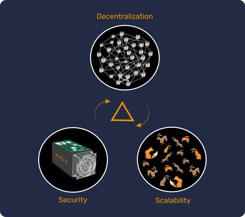 Problém škálovatelnosti se týká výzvy implementovat peněžní systém schopný poskytovat stále větší počet transakcí za sekundu, aby bylo možné čelit rostoucímu přijetí. Tento problém souvisí s trilematem blockchainu. Představte si trojúhelník, jehož vrcholy jsou decentralizace, bezpečnost a škálovatelnost.