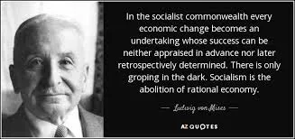 “Where there are no market prices for the factors of production because they are neither bought nor sold, it is impossible to resort to calculation in planning future action and in determining the result of past action. A socialist management of production would simply not know whether or not what it plans and executes is the most appropriate means to attain the ends sought. It will operate in the dark, as it were. It will squander the scarce factors of production both material and human (labour). Chaos and poverty for all will unavoidably result”