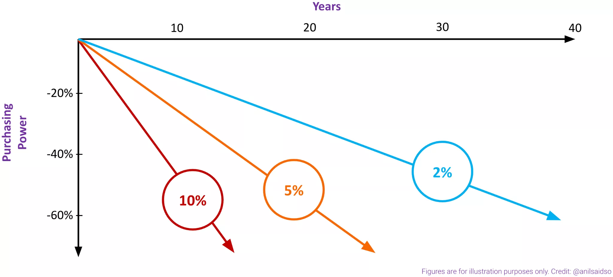 ● 2022 aasta lõpuks seisid peaaegu pooled maailma riigid silmitsi kahekohalise inflatsioonimääraga, õõnestades raskelt teenitud raha väärtust. Perspektiivi andmiseks, 10% inflatsioonimääraga üle aastakümne kaotaksite hämmastavad 65% oma ostujõust.