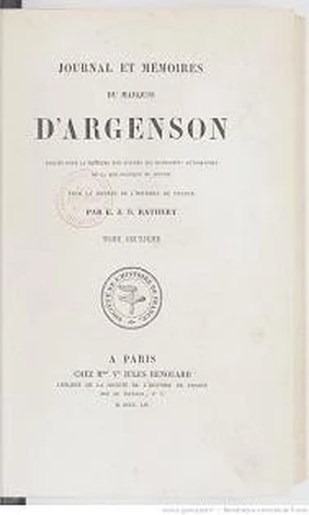 - Journal et mémoires du marquis d'Argenson, édition Rathery, 9 vols., Paris, 1859-1867