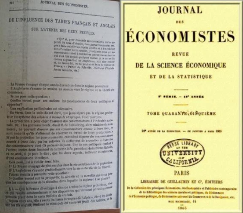 Ao retornar da Inglaterra, escreveu um artigo intitulado: "Sobre a Influência dos Tarifários Inglês e Francês no Futuro dos Dois Povos", que enviou ao Journal des Économistes em Paris. O artigo apareceu na edição de outubro de 1844, e foi um completo sucesso. Todos admiravam sua argumentação poderosa e incisiva, seu estilo sóbrio e elegante.
