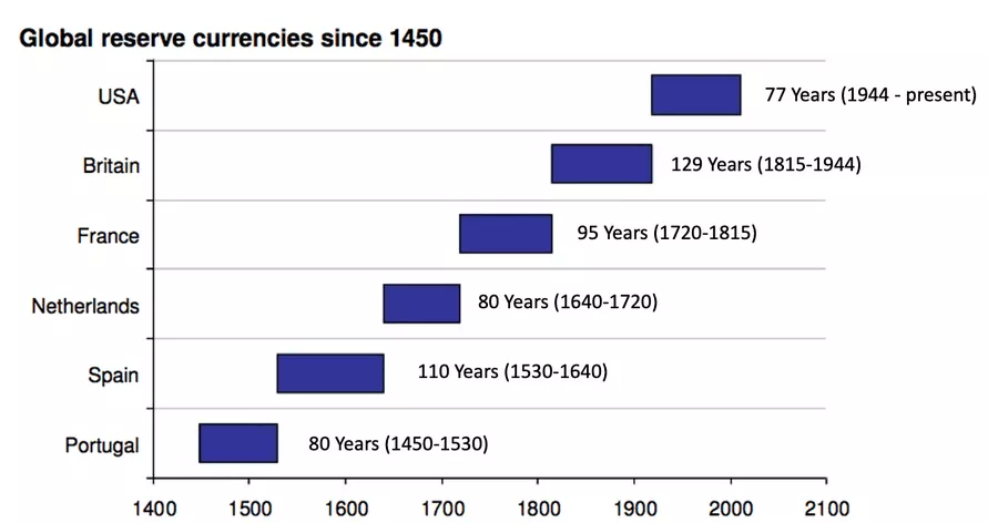 Anteriormente, durante o Renascimento, o florim italiano emitido por Florença no século XIII era a moeda de reserva internacional, e nenhuma desvalorização foi registrada durante seu período de uso, refletindo a importância da estabilidade monetária para o comércio internacional.
